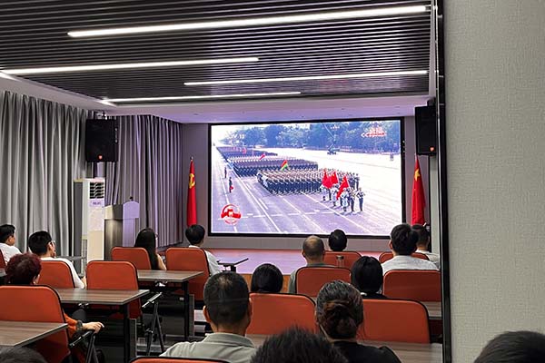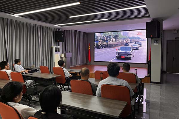 上午9時(shí),閱兵式正式開(kāi)始。當(dāng)嘹亮的國(guó)歌聲響起,全體員工自發(fā)起立,齊聲高唱,莊嚴(yán)的氛圍感染著現(xiàn)場(chǎng)每一個(gè)人。分列式上,中國(guó)人民解放軍將士們步伐鏗鏘、意氣風(fēng)發(fā);新型武器裝備依次亮相,展現(xiàn)出現(xiàn)代化國(guó)防力量的強(qiáng)大實(shí)力;一個(gè)個(gè)震撼人心的畫面,讓在場(chǎng)員工心潮澎湃,民族自豪感油然而生。閱兵儀式令人心潮澎湃,不僅增強(qiáng)了民族自豪感,也更深刻體會(huì)到和平的珍貴與奮斗的意義。